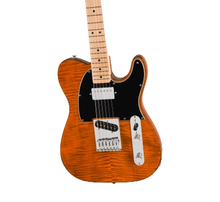 La guitarra eléctrica Squier Affinity Telecaster FMT SH ofrece diseño clásico, tapa de arce flameado y sonido versátil con pastillas simple y humbucker, ideal para todo tipo de guitarristas.